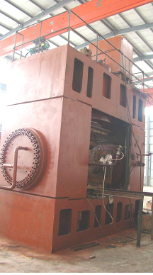 扩管机是针对大直径无缝钢管生产量不足和规格不全而设计的。该设备为双油缸或四油缸平行均速推制机,泵站阀台采用集成形式。按扩制钢管的外径及长度,设置中频加热电源的功率、油缸的推力及行程。 The expanding machine isdesigned due to the insufficiency of largediameter seamless steel tube production andspecification. It’s a two oil cylinder or fouroil cylinder parallel uniform velocity pushingmachine, pump station valve table adoptsintegrated form. Setting the power of mediumfrequency heating power supply, force and strokeof oil cylinder according to the outer diameterand length of the pipe. The expanding machine hasfollowing parts: Main machine, automatic feedingand unloading material system, hydraulic pumpstation, operation desk, motor control cabinet,medium frequency power supply, compensatingcapacitor, water cable, adjustable holder ofinduction coil and reactor. The expanding machinemaximum expanding range: pipe diameter