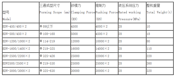 EDW系列冷挤三通机适用于Φ21-426mm的不锈钢及碳钢三通管件。