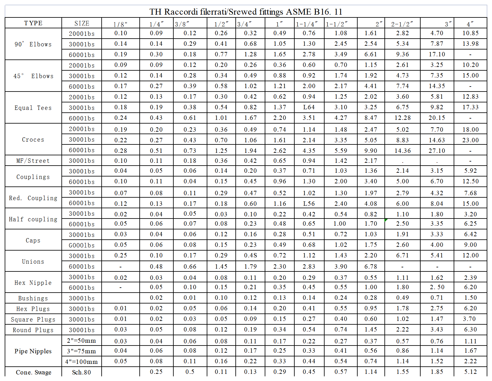 锻制螺纹管件重量 Forged_FITTING_weight_TH WEIGHT