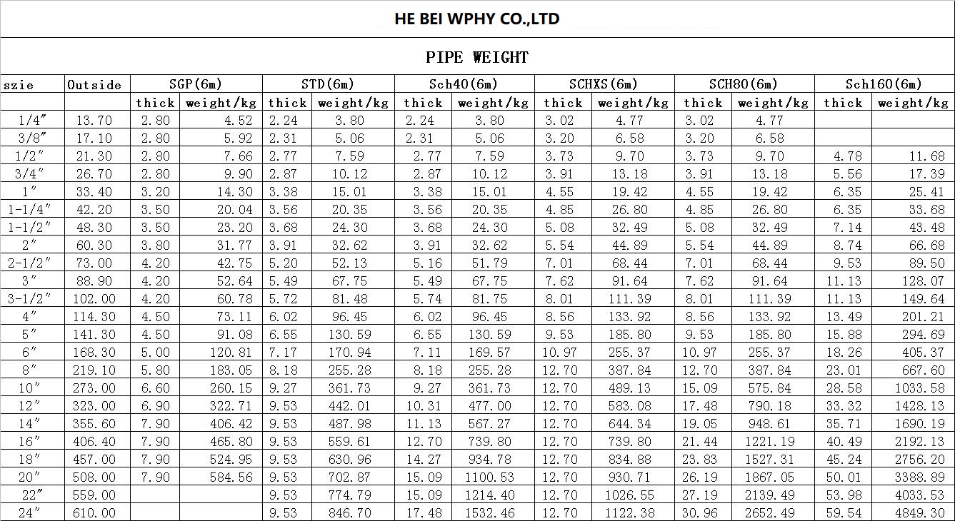 钢管重量 PIPE WEIGHT