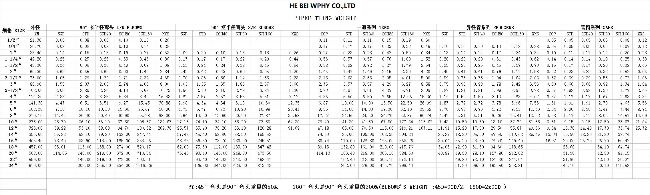 管件重量 PIPE FITTING WEIGHT